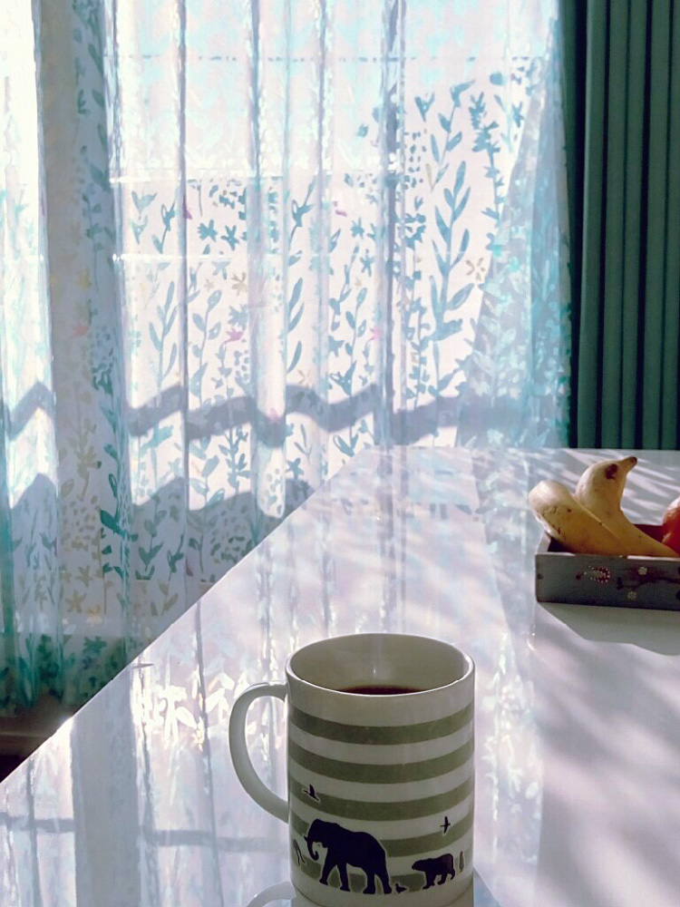 日当りのいい二階リビングなので、窓を開けておくと風で揺れてオパールの柄がキラキラ透けて、とってもきれいです。