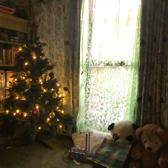 夕方は電気を消して仕事の手を止めて、半分カーテンを閉めて、この眺めを楽しんでいます。光を楽しませてくれるカーテンですね。
