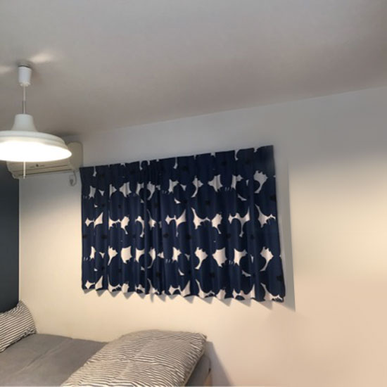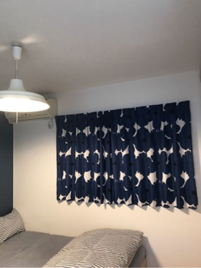 殺風景な部屋が素敵なカーテンのおかげでお気に入りの空間になりました。