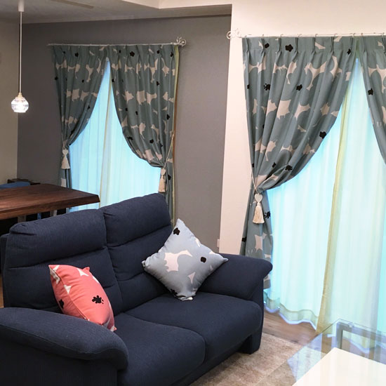 お値段もカーテンのお店の半額ぐらいで揃えることができ、仕上がりにも大満足です。