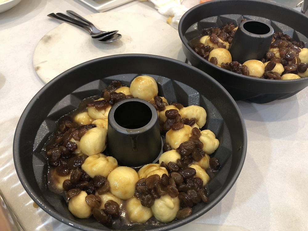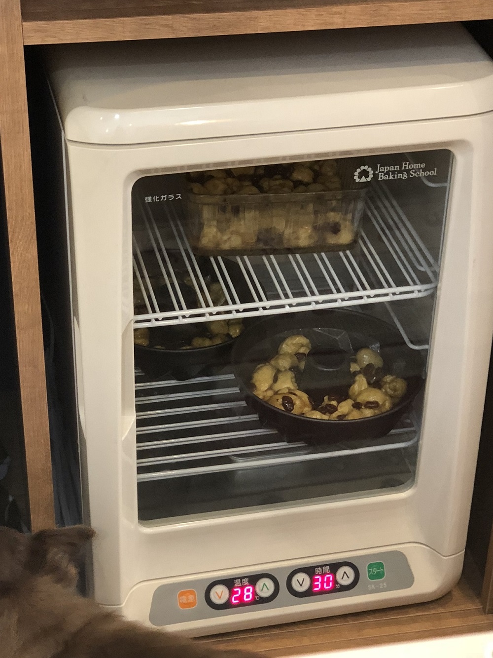 発酵させるマシンに入れられて、レーズンパン (モンキーブレッドというそうです!) も準備完了です。