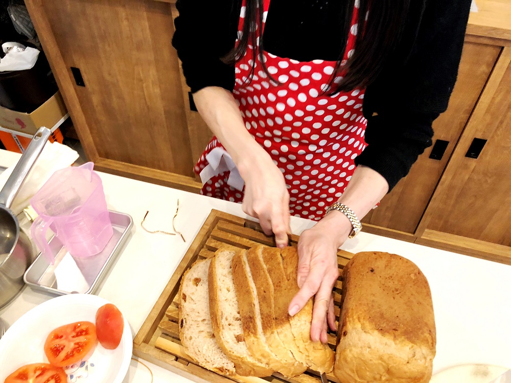 奥様「本当、焼きたては特に美味しいですよね。それに、自分で作れば添加物などの混じりけの無い、身体に優しいものが食べられますので、おすすめですよ。さぁ、沢山召し上がってくださいね!」