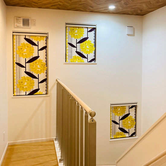 【お客様からのご感想】 階段の窓に。 白い壁に黄色いお花が映えてとても気に入ってます。 かわいい生地が沢山あったので悩みましたが、 サイト内のシュミレーションでイメージできたので満足いくものになりました。 【スタッフより… 続きを読む 北海道のお客様よりロールスクリーン<ヴォイクッカ イエロー>のご感想をいただきました